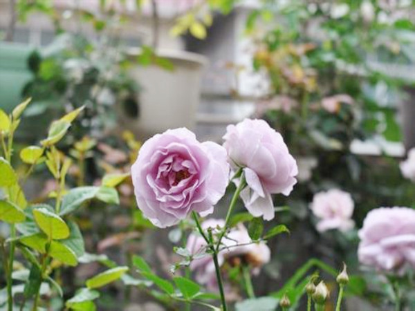 月季花喜光,在生長季節要有充足的陽光,每天至少要有6小時以上的光照,否則,只長葉子不開花,即便是結了花蕾,開花后花色不艷也不香。薰衣草花環和薰衣草花束是月季中的同一個品種,枝條較細,幾乎無刺,多頭開放,花朵顏色為藍紫色,花徑在6-8厘米,花重瓣,沒有香味,薰衣草花環長勢迅速,樹勢較強,分枝性不如其他品種。喜好全日照,微酸性土壤,花期自春末至秋末,為藤本或大灌木型品種。